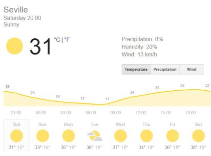 A warm pre-summer evening in the city of Seville today where temps. were over 30 degrees earlier.